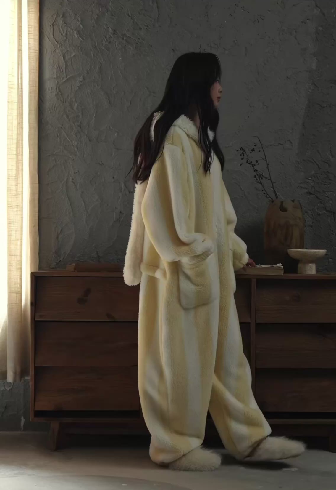 Cozy Striped Fluffy Onesie – Winter Snuggle Edition